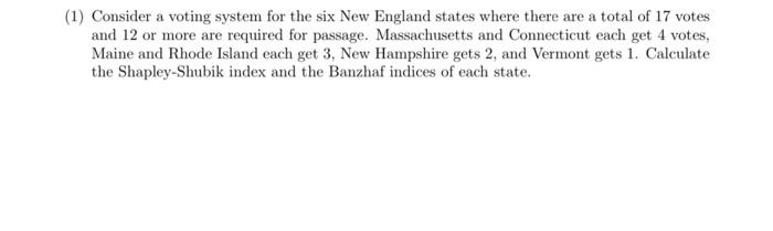 Solved 1 Consider A Voting System For The Six New England Chegg Com
